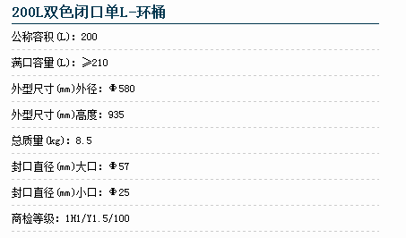 ◆适应环保潮流:桶顶的设计可保证倾倒时残留内装液的体积不超过50mI,容易清洗,便于重复使用,减少内装物的浪费,减少了洗桶时桶内残余物料对水环境的污染。